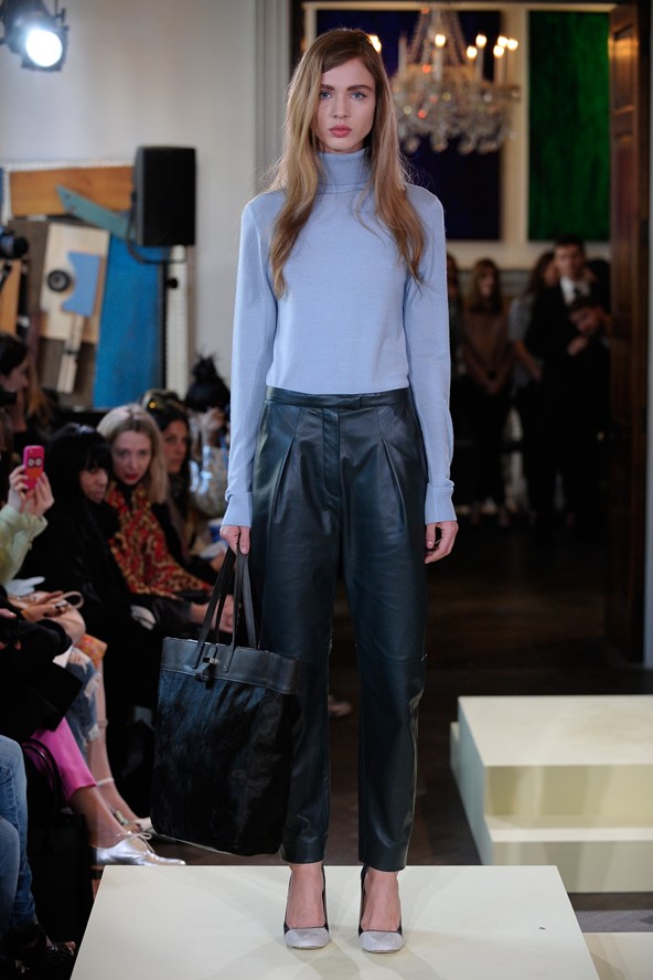 It's their attitude to womens-wear that really captures myself more than anything. To me, with the help of previous collections, this one says that elegance, class and femininity are all valuable assets to a woman's wardrobe. However, the collection also seems to represent the idea that it is a woman's independence and unconventional wardrobe choices which will set her apart from the crowd. Leather trousers, camo-print dresses, wild hair styles and oriental silk pyjama suits are by no means designs influenced by a desire to impress those with a sexual interest or anyone else the wearer of these clothes might encounter for that matter. This collection is all about the woman and her right to dress for herself, whether she feels comfortable in the traditional thin knits and silks or wants to embrace the boy-ish leather and khaki trends. The low heels, casual hair and make-up styles and practical, versatile bags all add to the theory of the independent femininity of the modern woman.